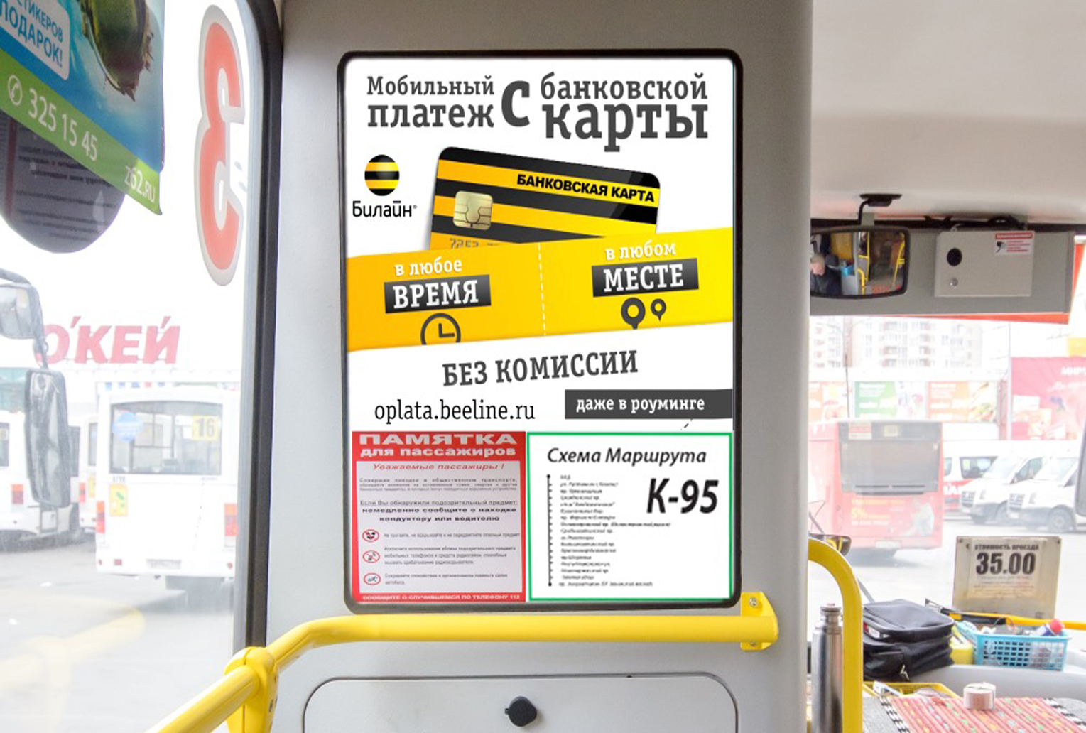 Рекламные стикеры в междугороднем автобусе на фото выше