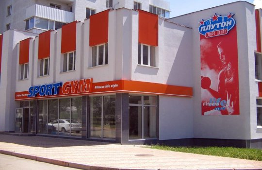Пример рекламного баннера на здании фитнес-клуба: