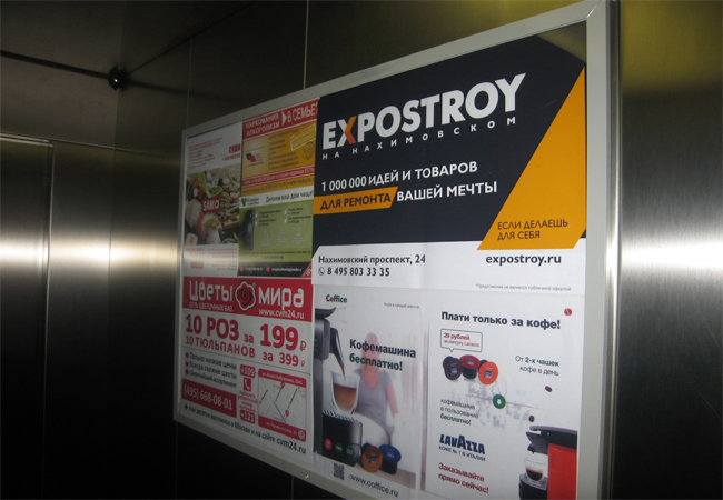 Примеры наших работ при размещении рекламы в лифтах представлены ниже:
